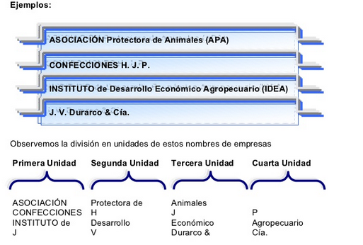 *Las empresas tienen tantas unidades como resulten, salvo el caso de los artículos,preposiciones y conjunciones que no se consideran como unidades de clasificación. Los artículos serán considerados únicamente cuando vayan al comienzo de la razón social.