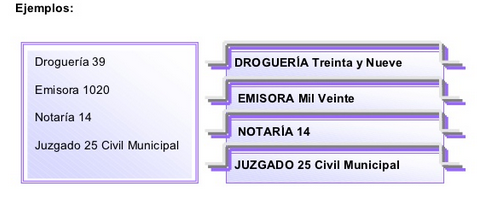 Cuando en el nombre de una empresa existen números, deben tratarse como si estuvieran escritos en letras. Sin embargo, cuando en el nombre de una razón social existe un número que es consecutivo, como es el caso de notarías,juzgados, almacenes en cadena, entre otros, éste conserva el orden y la escritura numéricos.